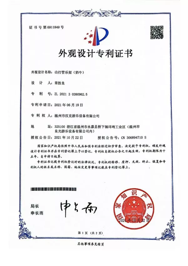 Сиыр тәрізді перкуссияның мөлшері 155 * 33 * 150, алюминийден жасалған алюминийден + әйнек талшықты пластик + мырышталған құбырдан тұрады. Оның ерекше тон мен сүйкімді көрінуіне байланысты көптеген балалар оны қызықтырады.