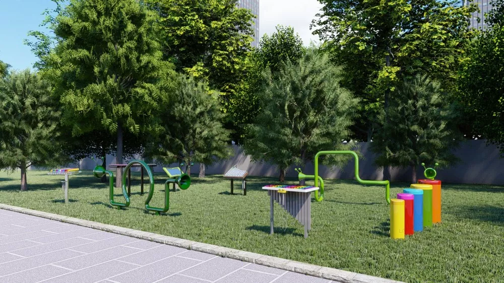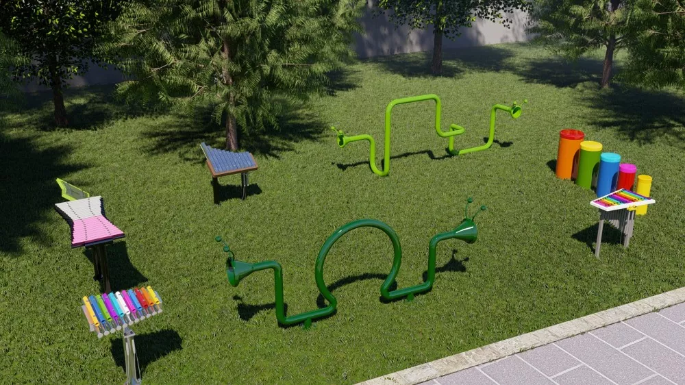 Trube Trube ойын алаңы - әр түрлі биіктіктің екі сүйкімді бұрыштары бар, әр түрлі жастағы бұрыштары бар, бұралған мырышталған болат құбыры, оны әр түрлі жастағы балаларға ыңғайлы етеді. Аяқ педаль есту қабілетін ынталандыратын және балаларға дыбыстық таралудың себептік қатынасын түсінуге көмектесу үшін жасалған. Ауа-райы төзімді материалдар ұзақ мерзімді ашық ауада қолдануға мүмкіндік береді. Орнату және техникалық қызмет көрсетудің қарапайымдылығына байланысты, бұл күндізгі емдеу орталықтарына, жіктелген қалалық парктерге және балаларға арналған басқа да ашық немесе жабық алаңға өте қолайлы.