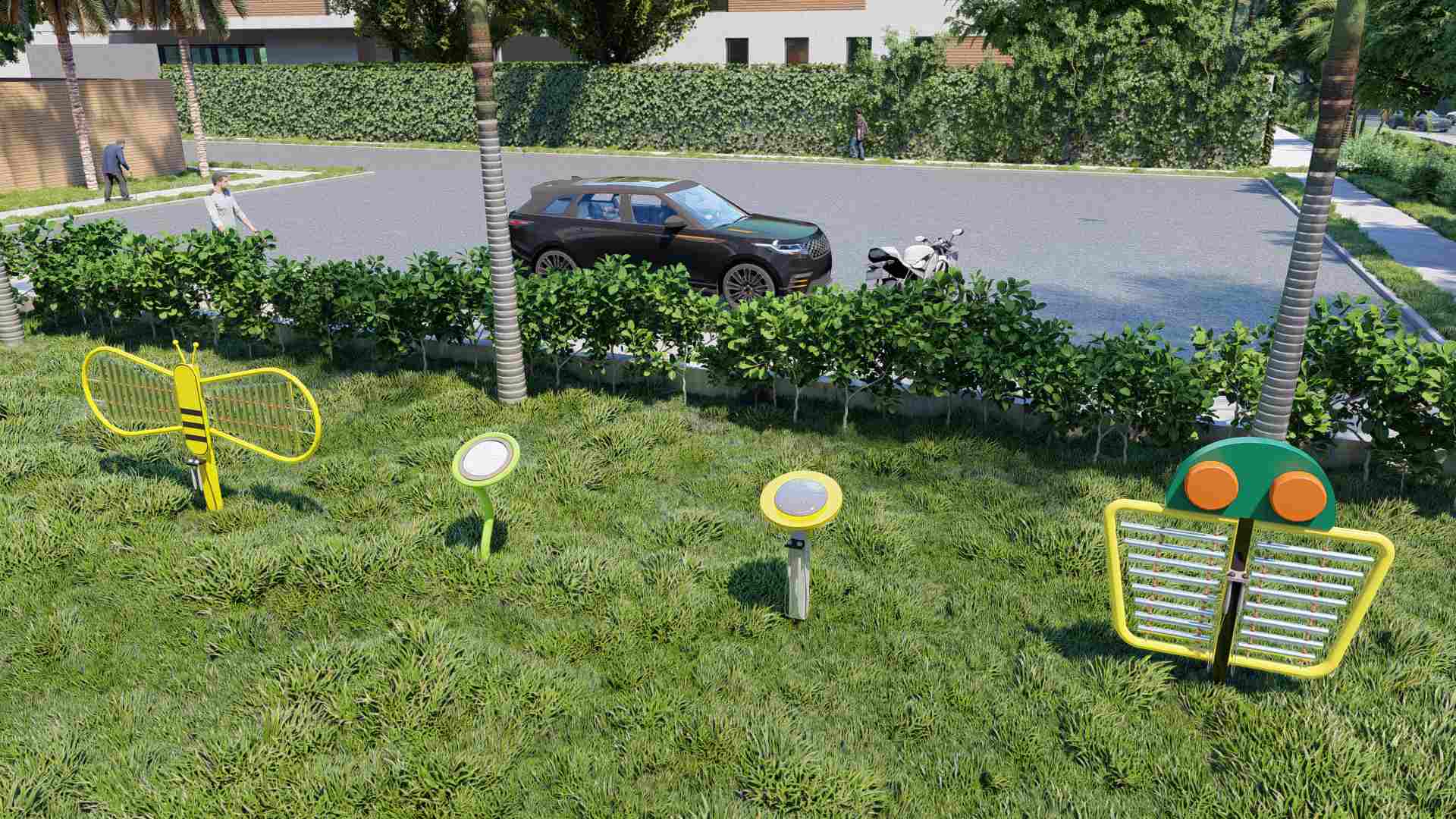 Қашықтан бастап, бұл «күнбағыс» гүлденгені сияқты. Жарқын сары түсті дискілер жанды және көзді ұстайды, балалар көзіндегі ең жарқын түс сияқты; Ағаш бағандарда табиғи және жылыстық құрылымы бар, сыртқы ортада үйлесімді араласады. Тіпті неғұрлым мұқият болу, жабдықталған гаммер керемет түрде жобаланған және ілулі бөлікті пайдалану оңай, сондықтан музыкалық сапарға оңай түскісі келетін барлық балаға музыканы зерттегісі келеді. Кәсіптік парктер, кампус ойын алаңдары немесе мәдени және туристік аудандар ма, бұл динамикалық түстер мен ерекше пішіндер бірден ашық кеңістіктердің назарын аударады, адамдардың қызығушылығын ояту, музыканың қызығушылығын ояту.