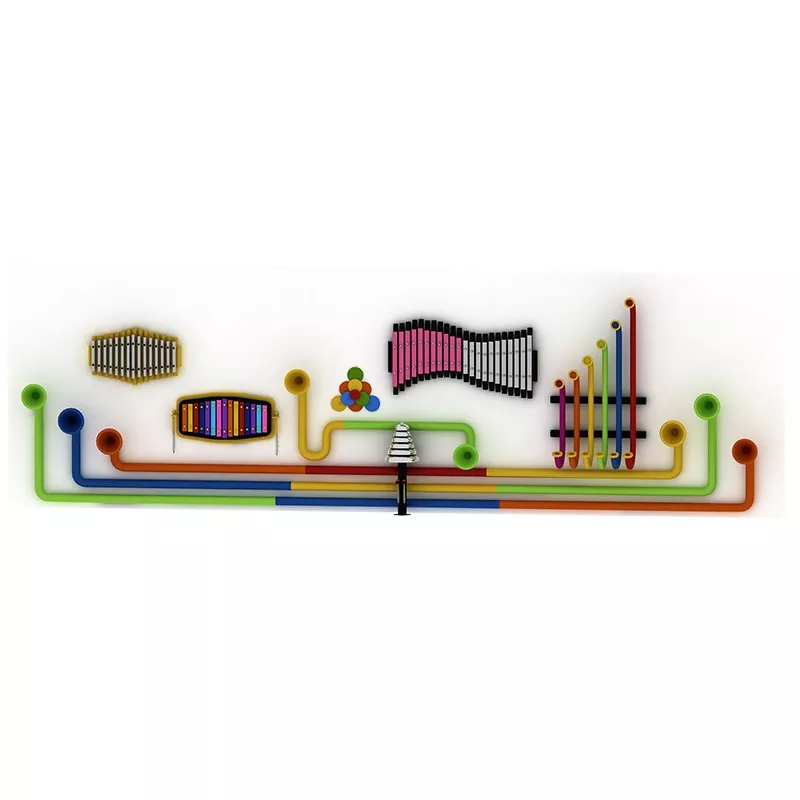 Бұл сөйлесу түтігі музыка жабдықтары ауа-райына төзімді жоғары сапалы мырышталған құбырдан, алюминийден және PE материалдарынан жасалған. Маримбаспен және балаларға арналған басқа аспаптармен жабдықталған алты динамиктің жиынтығы бар. Бұл дыбыстық ойын алаңының өлшемі мен түсін өзгертуге болады, ал өнімді сонымен қатар қажеттіліктеріңізге қарай ауыстыруға болады. Сондай-ақ, сізге ең жақсы көрнекі әсерлер мен ойын тәжірибесі үшін үлкенірек болу ұсынылады.